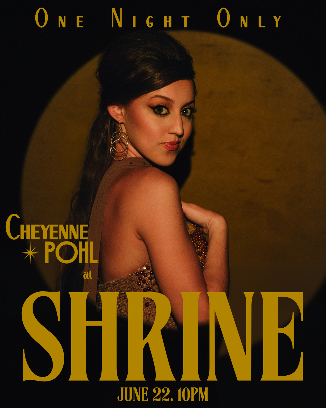 Cheyenne Pohl’s One Night Only is a series of exclusive solo performances, each taking place for one night at select venues. These standalone appearances showcase Cheyenne’s dynamic stage presence, powerful vocals, and modern pop sound with retro flair, creating a special, limited live experience available for one night only.