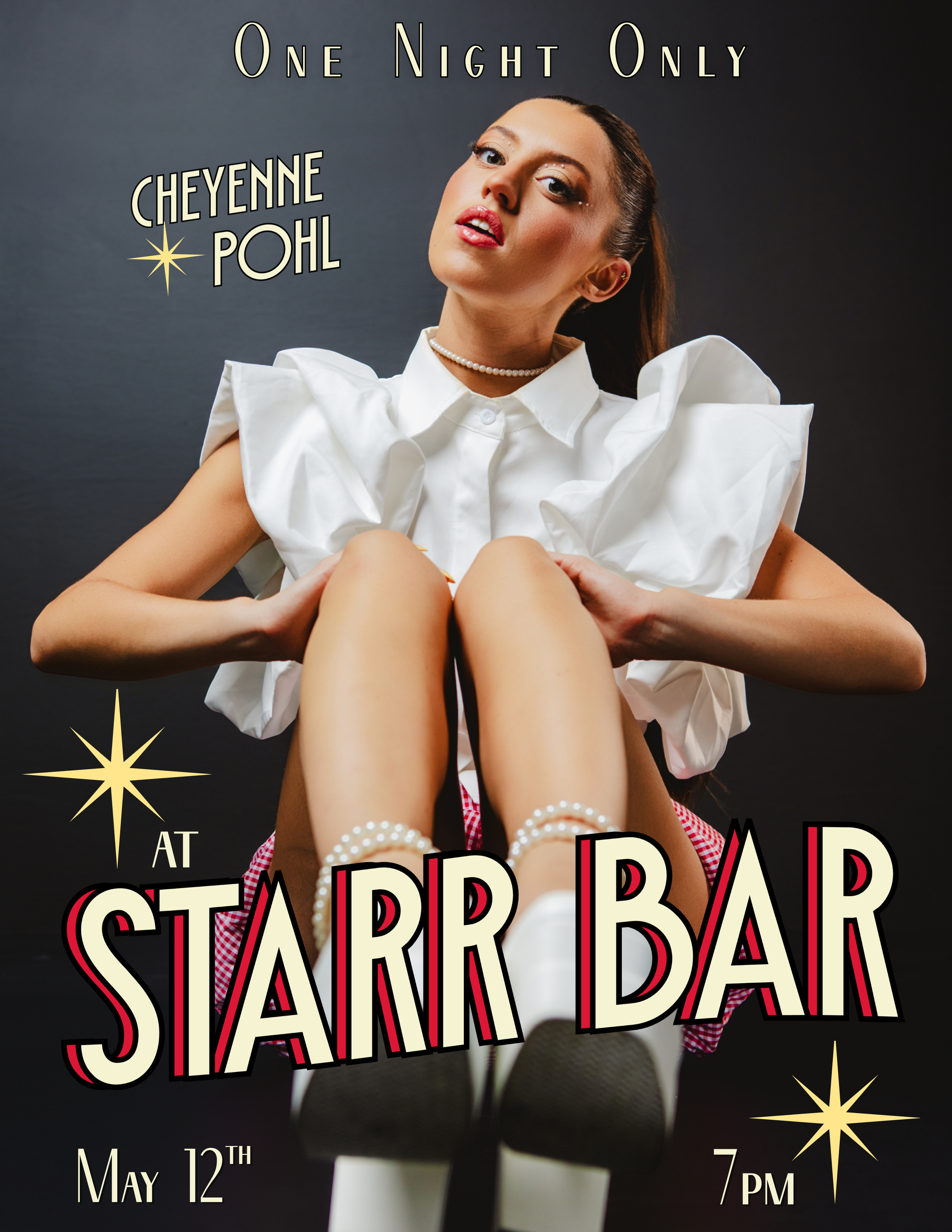 Kicking off at Starr Bar, Brooklyn NY…Cheyenne Pohl’s One Night Only events are a series of exclusive solo performances, each taking place for one night at select venues. These standalone appearances showcase Cheyenne’s dynamic stage presence, powerful vocals, and modern pop sound with retro flair, creating a special, limited live experience available for one night only.
